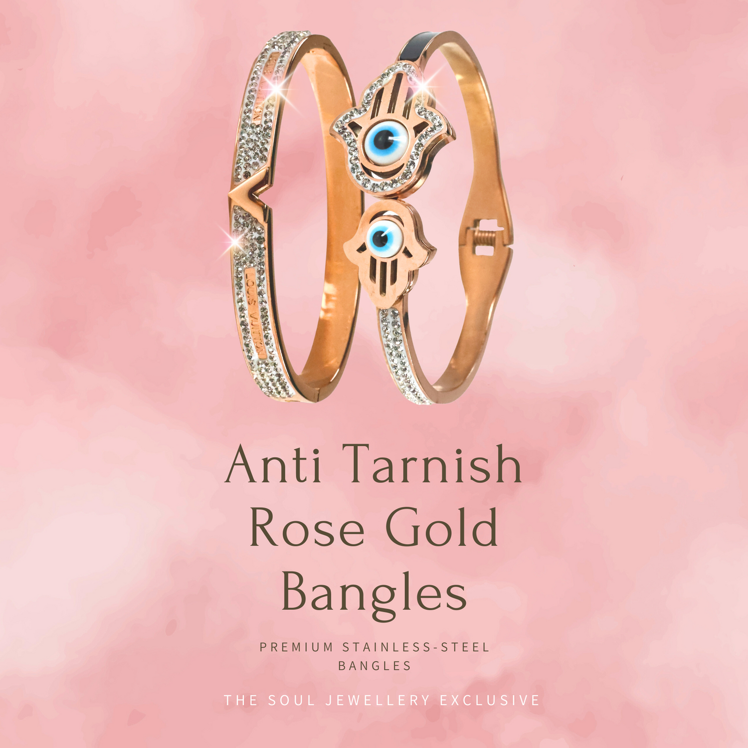 18 K Rose Gold Plated Anti Tarnish Good Luck Evil Eye Openable Bangle RGB152
