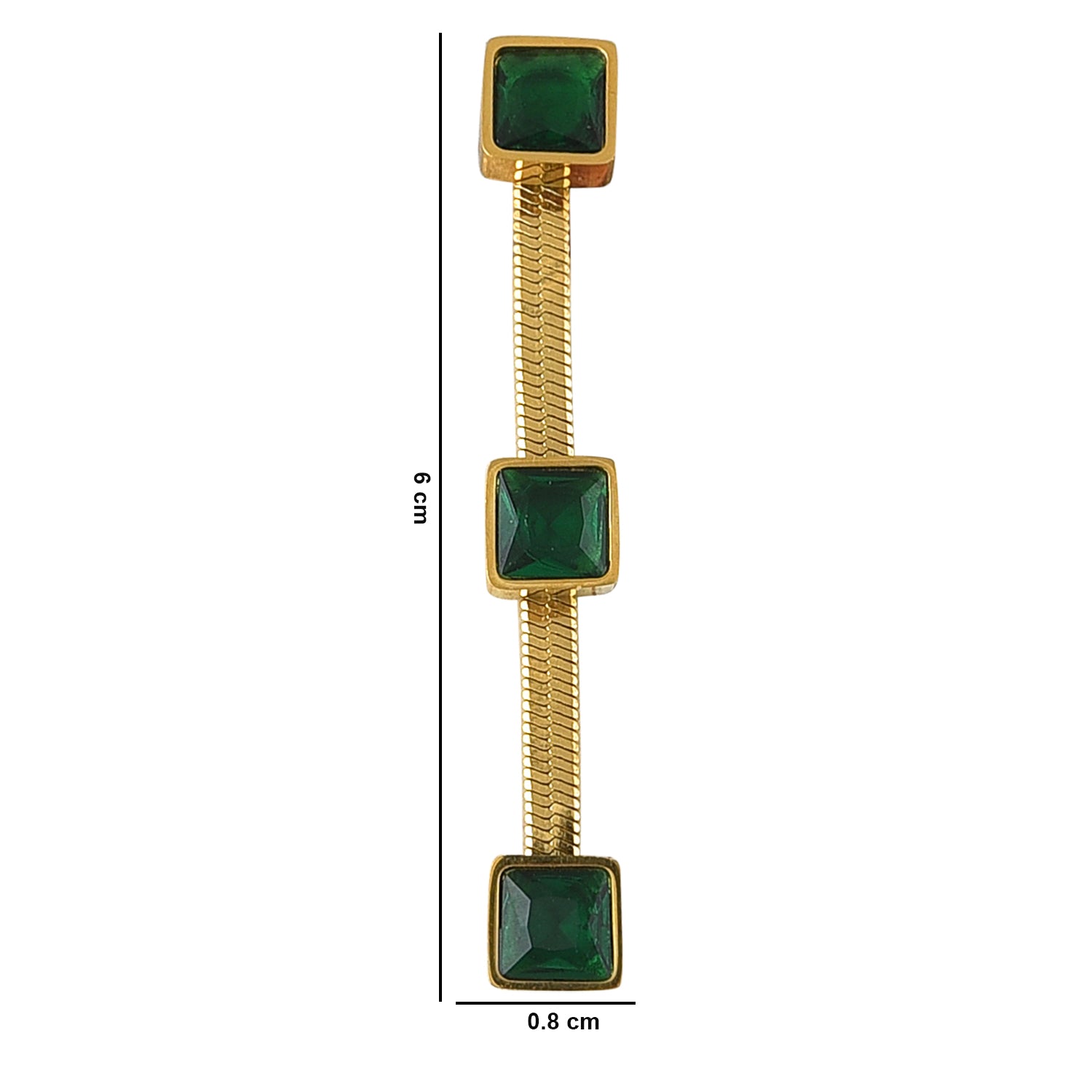 ✔ 18K Gold Plating – A radiant, long-lasting finish that exudes sophistication ✔ Premium Stainless Steel Base – Ensures durability, corrosion resistance, and long-term shine ✔ Emerald Green Square Gemstones – Eye-catching, vibrant, and elegantly set for a regal look ✔ Anti-Tarnish & Hypoallergenic – Perfect for sensitive skin, maintaining its beauty over time ✔ Lightweight & Comfortable – Designed for all-day wear without discomfort ✔ Versatile & Chic – Ideal for casual outings, formal events, and everything in between