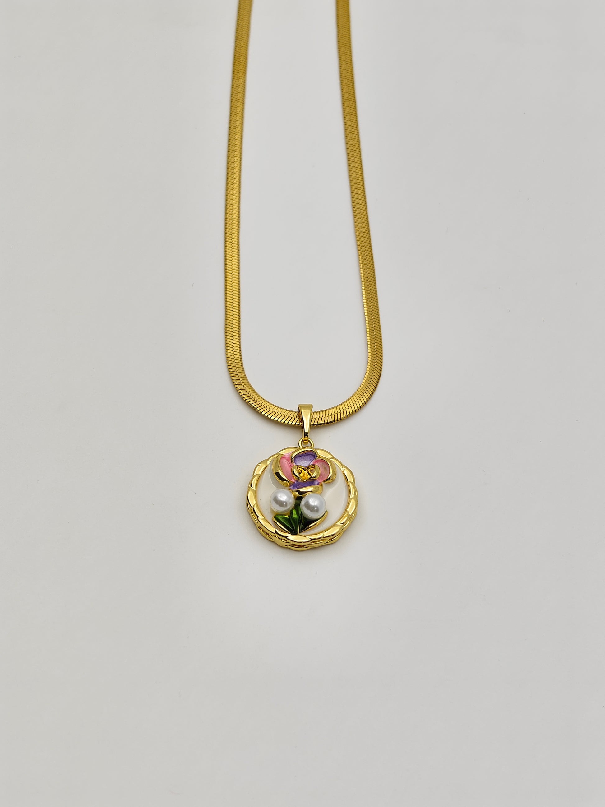 Luxury Anti-Tarnish Pink Floral Pearl Pendant Chain for Women | 18K Gold Plated Daily Wear Necklace | Good Luck Jewellery Gift – Series 777